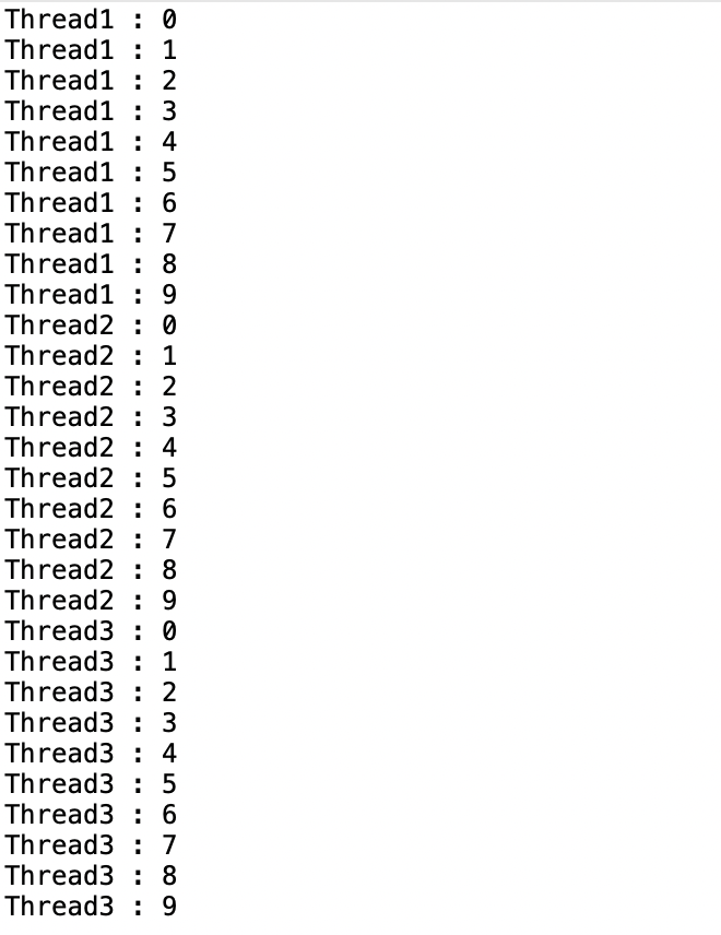 - Thread1, Thread2, Thread3 클래스는 Thread 클래스를 상속받아 구현했다.
