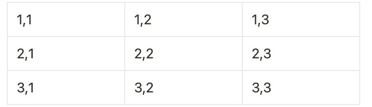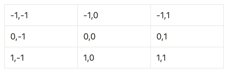 예시처럼 지뢰가 2, 2에 있다고 가정할 때 8방향의 좌표는 아래와 같다.