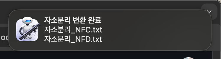 - Notion 또는 Gmail 전송 후 Windows에서 확인하였으나 NFD로 저장되어 변환의 의미가 없음