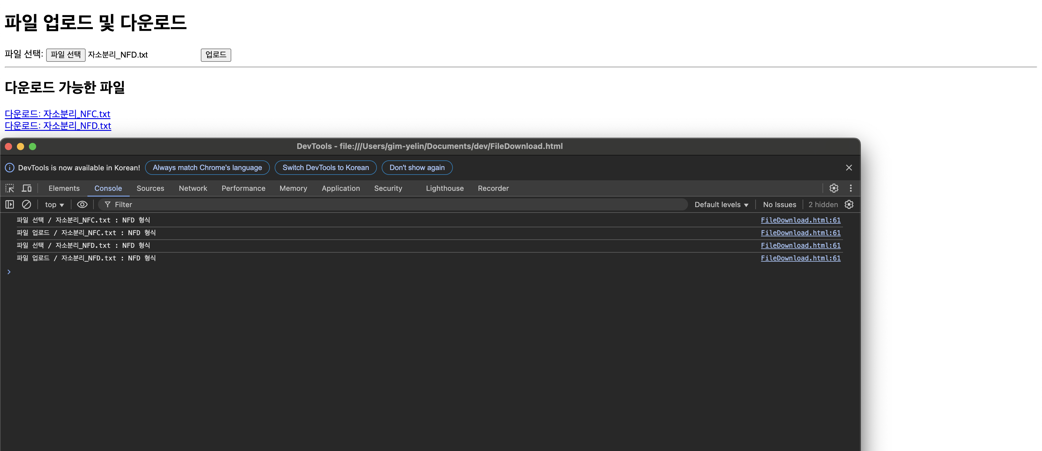 - 파일 형식에 상관없이 Chrome을 이용하는 순간 NFD로 변환됨