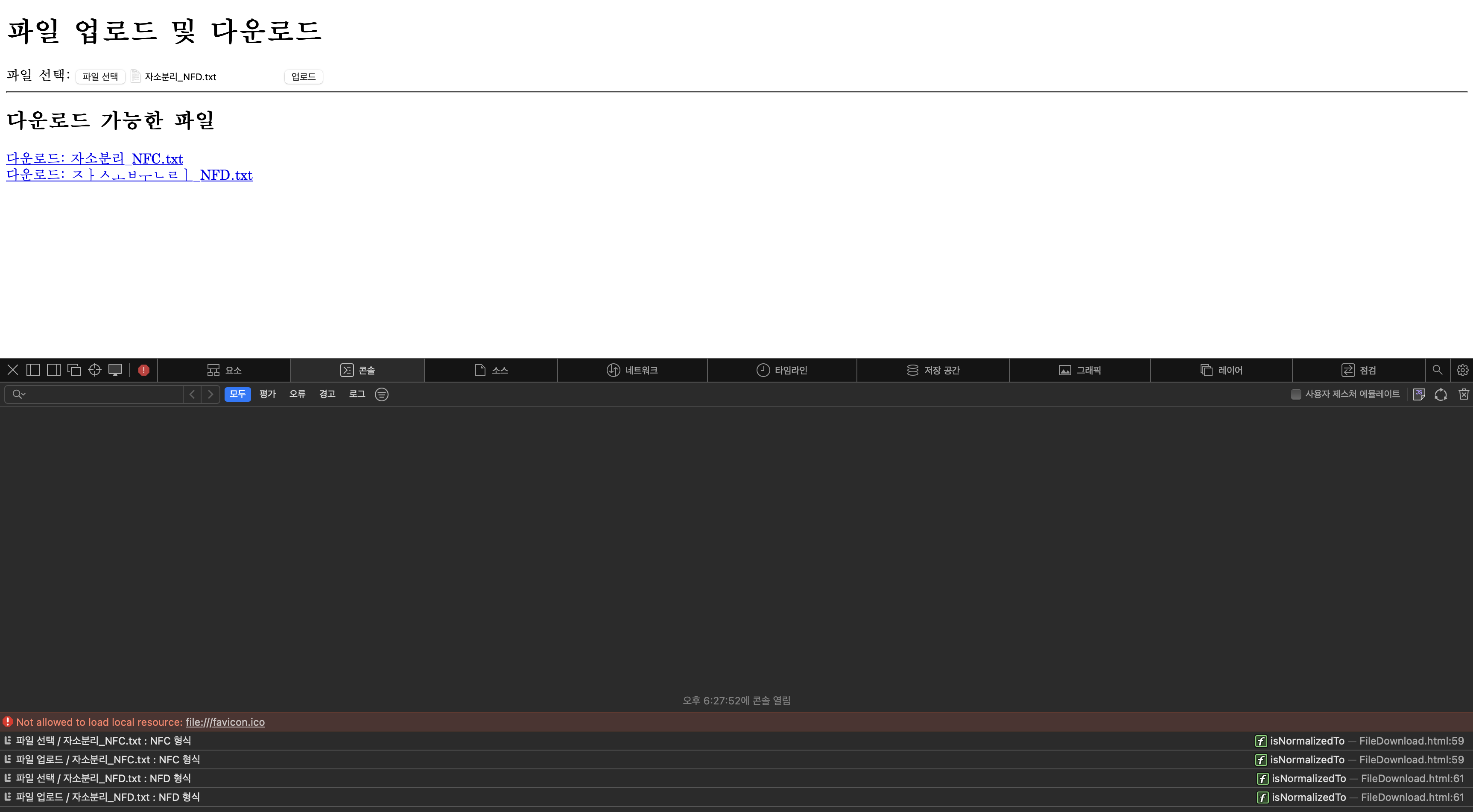 - Firefox도 확인했으나 Chrome과 마찬가지로 NFD로 변환됨
