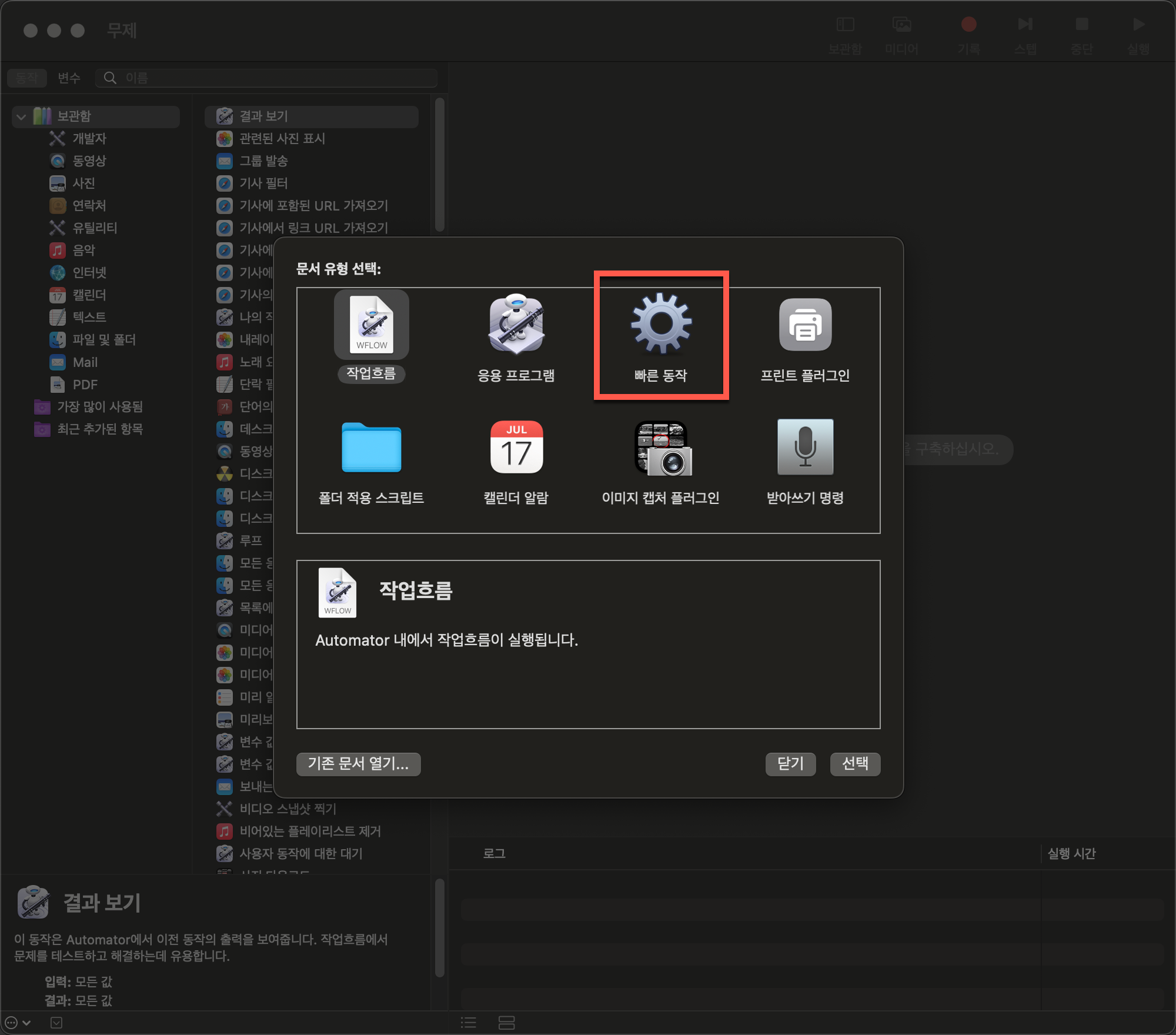 3. 현재 수신하는 작업흐름 > 파일 또는 폴더 / 선택 항목 위치 > Finder.app 선택